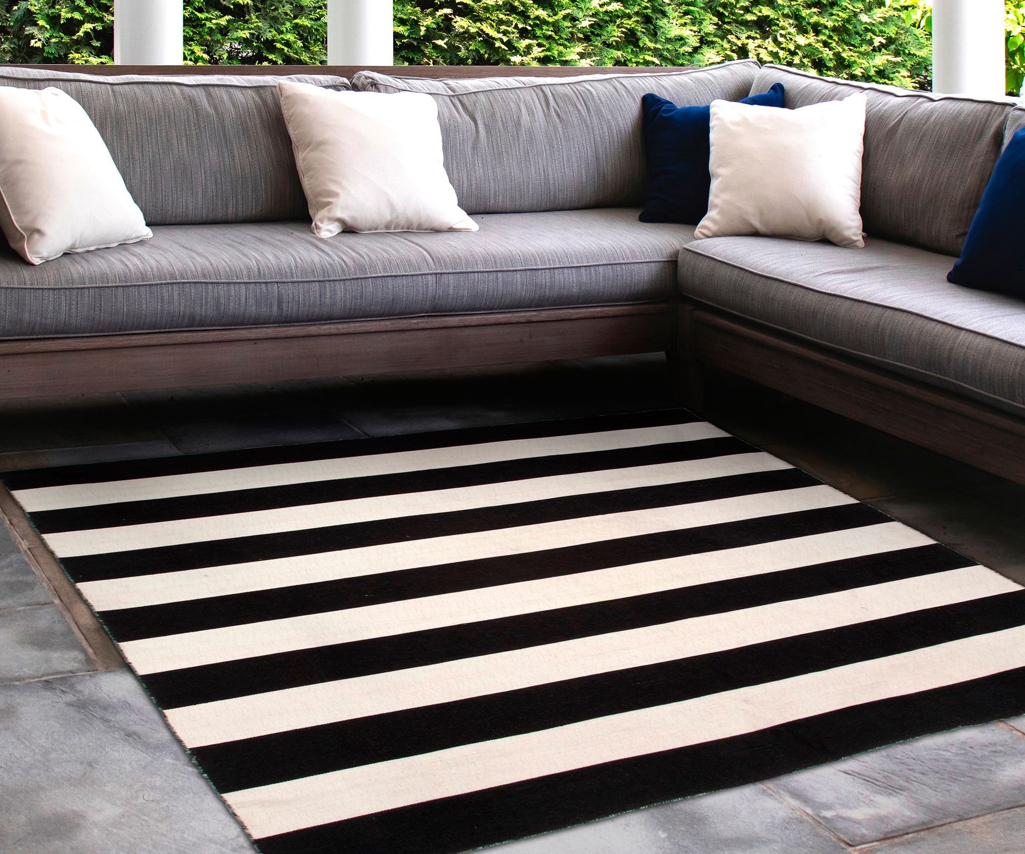 Sorrento Rugby Stripe 630248 5'x7'6" Black Outdoor Area Rug