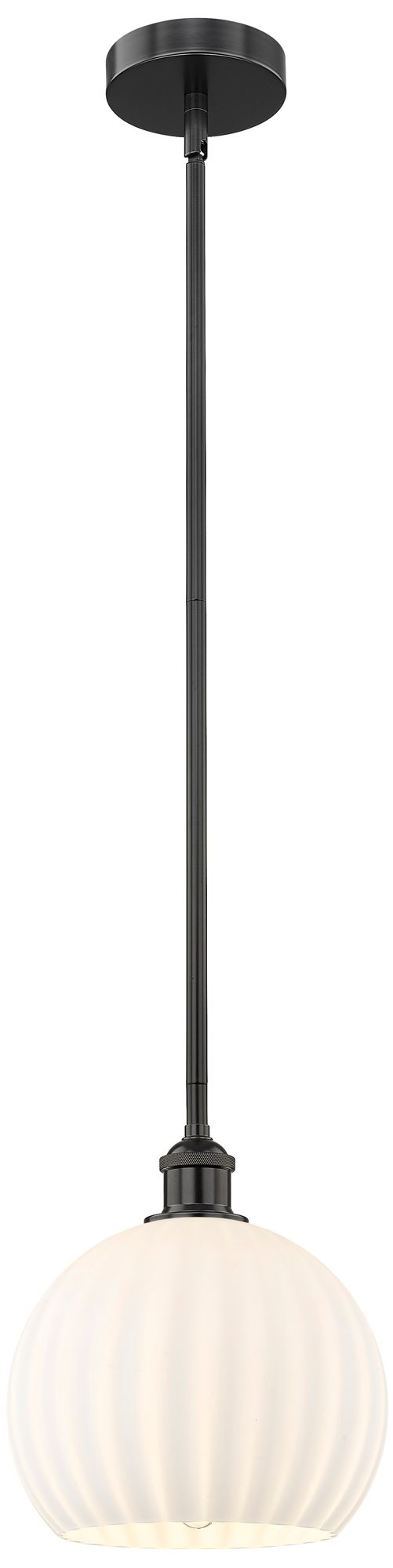 Edison 10" Wide Matte Black Stem Hung Mini Pendant w/ White Venetian S