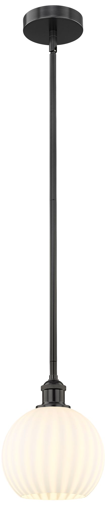 Edison 8" Wide Matte Black Stem Hung Mini Pendant With White Venetian