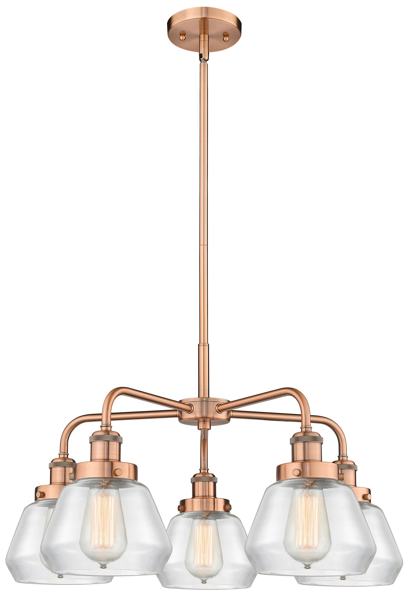 Fulton 24.5"W 5 Light Antique Copper Stem Hung Chandelier w/ Clear Sha