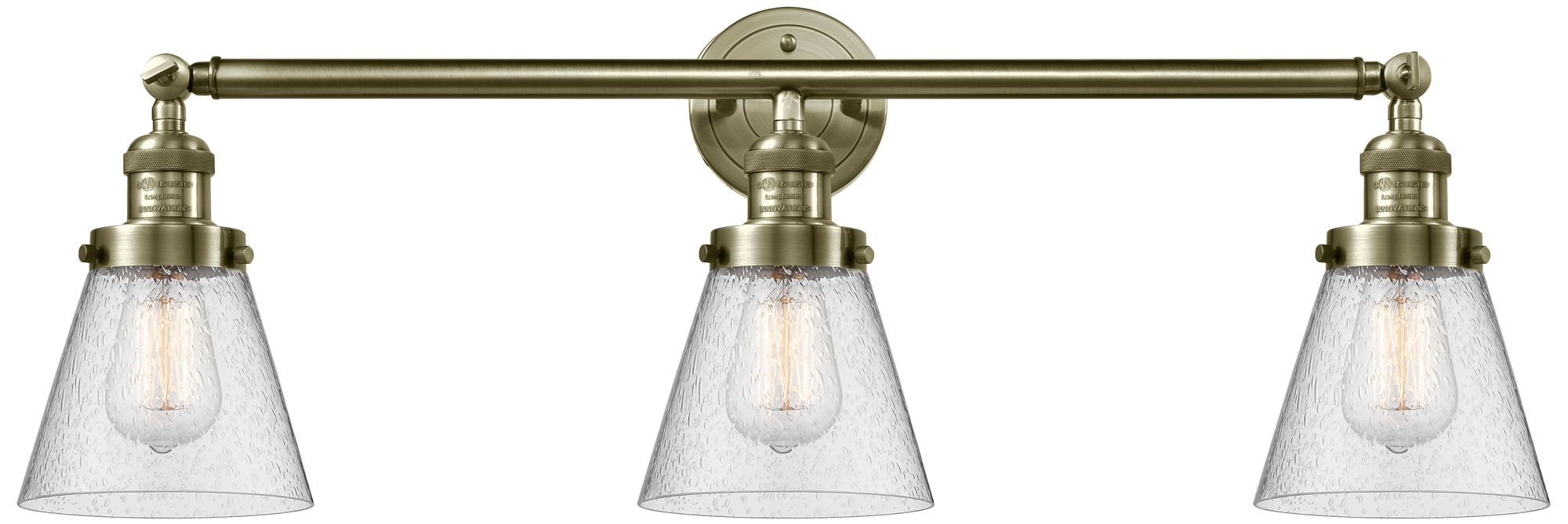 Cone 3 Light 30" LED Bath Light - Antique Brass - Seedy Shade