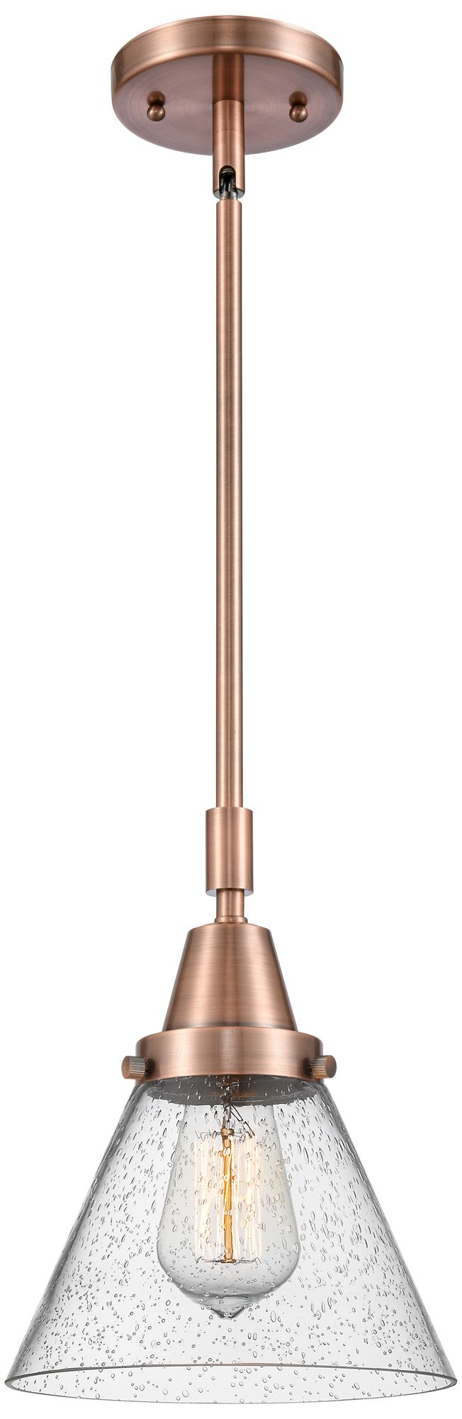 Caden Cone 8" Wide Copper Stem Hung Mini Pendant w/ Seedy Shade