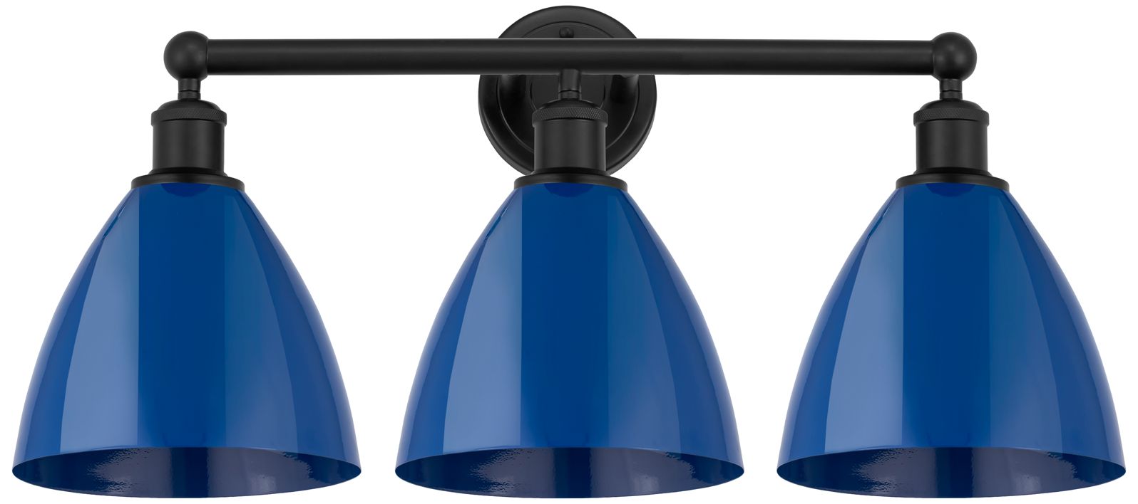 Plymouth Dome 26" 3-Light Matte Black Bath Light w/ Blue Shade