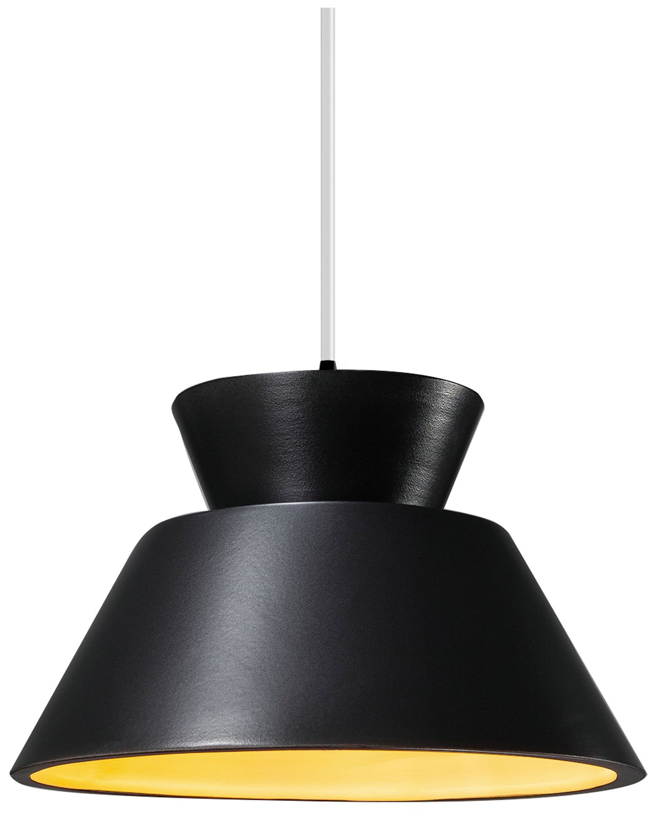 Radiance 11"W Trapezoid Matte Black Metal Pendant w/ Black And Gold Sh