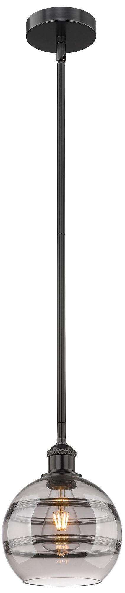 Edison Rochester 8"W Matte Black Stemmed Mini Pendant w/ Light Smoke S
