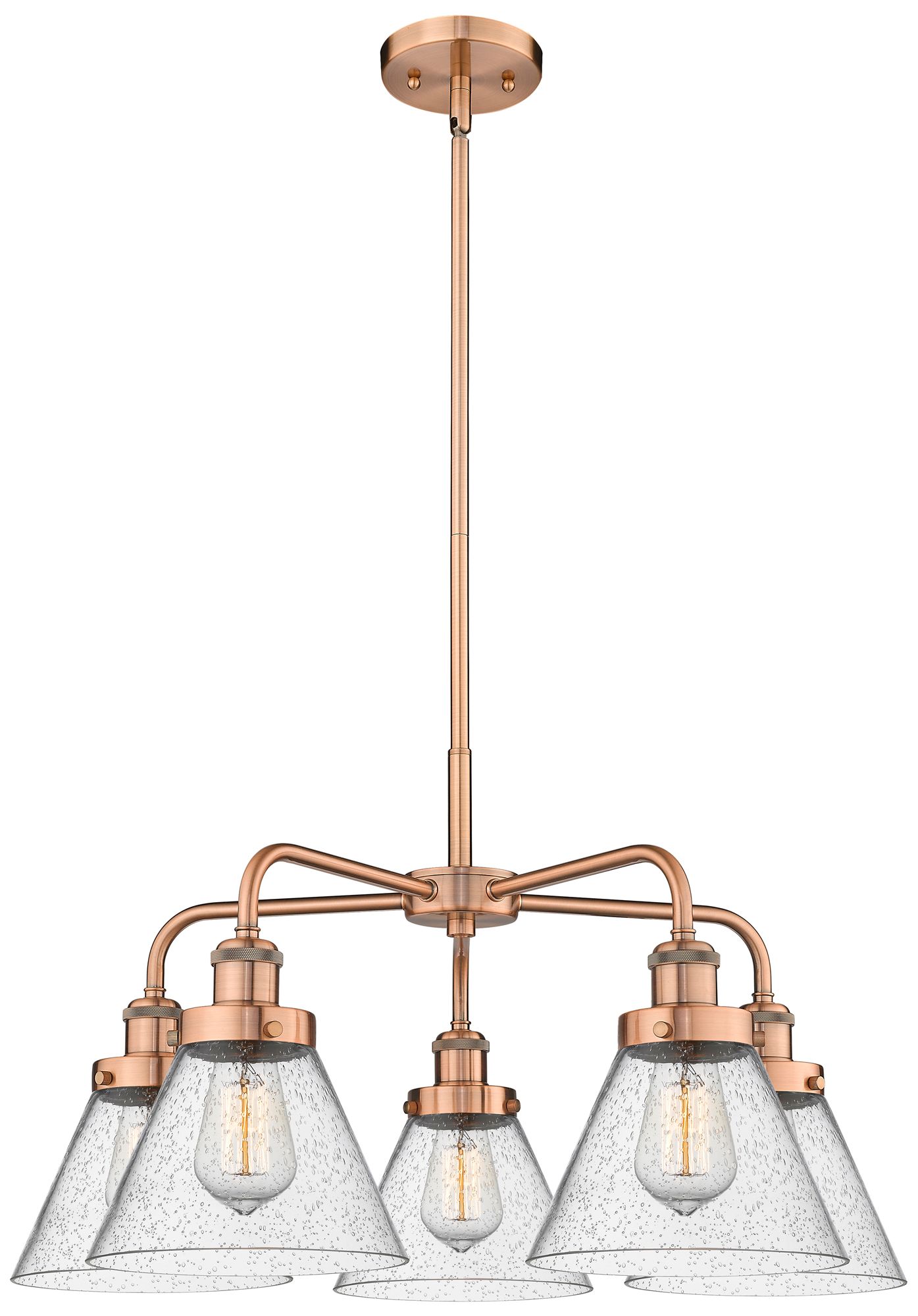 Cone 25.75"W 5 Light Antique Copper Stem Hung Chandelier w/ Seedy Shad