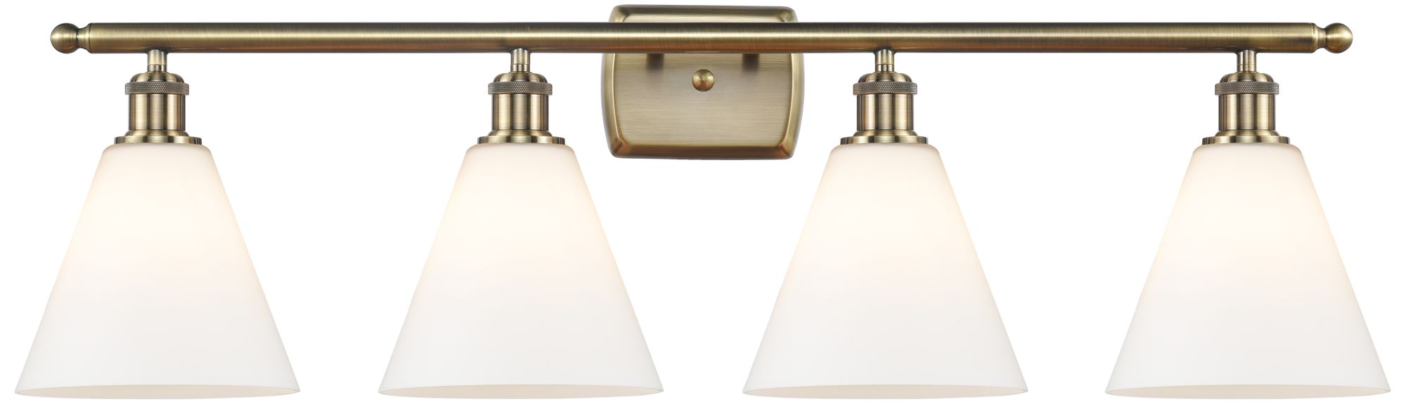 Berkshire 4 Light 38" Bath Light - Antique Brass - Matte White Shade