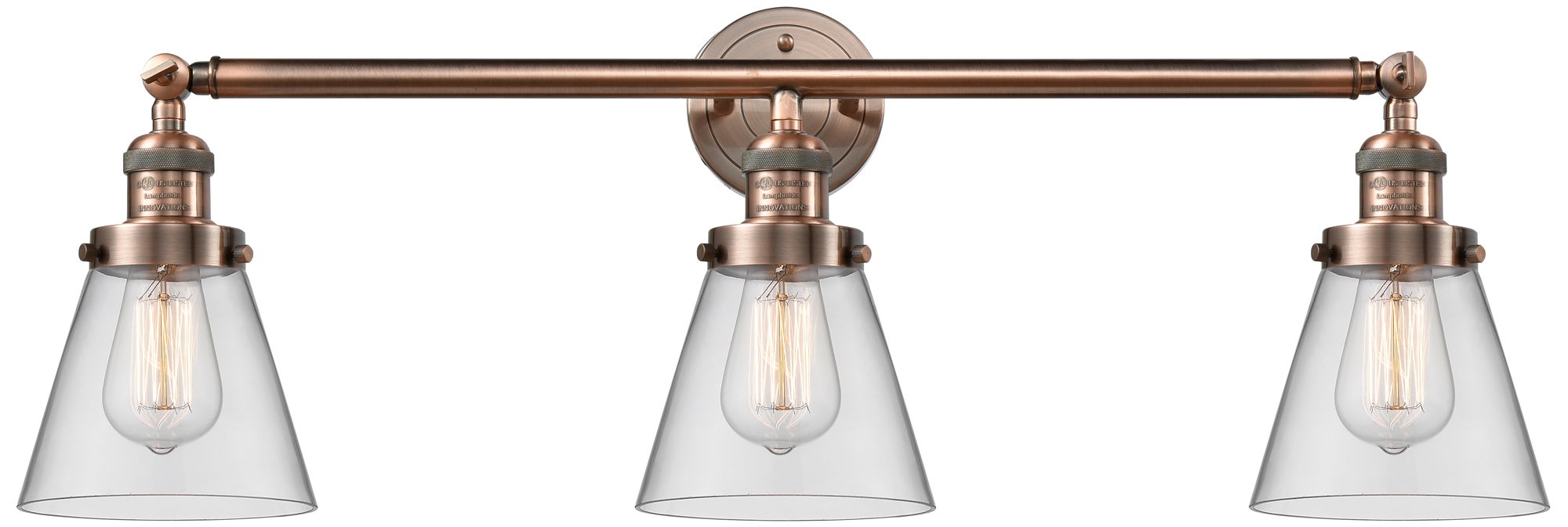 Cone 3 Light 30" LED Bath Light - Antique Copper - Clear Shade