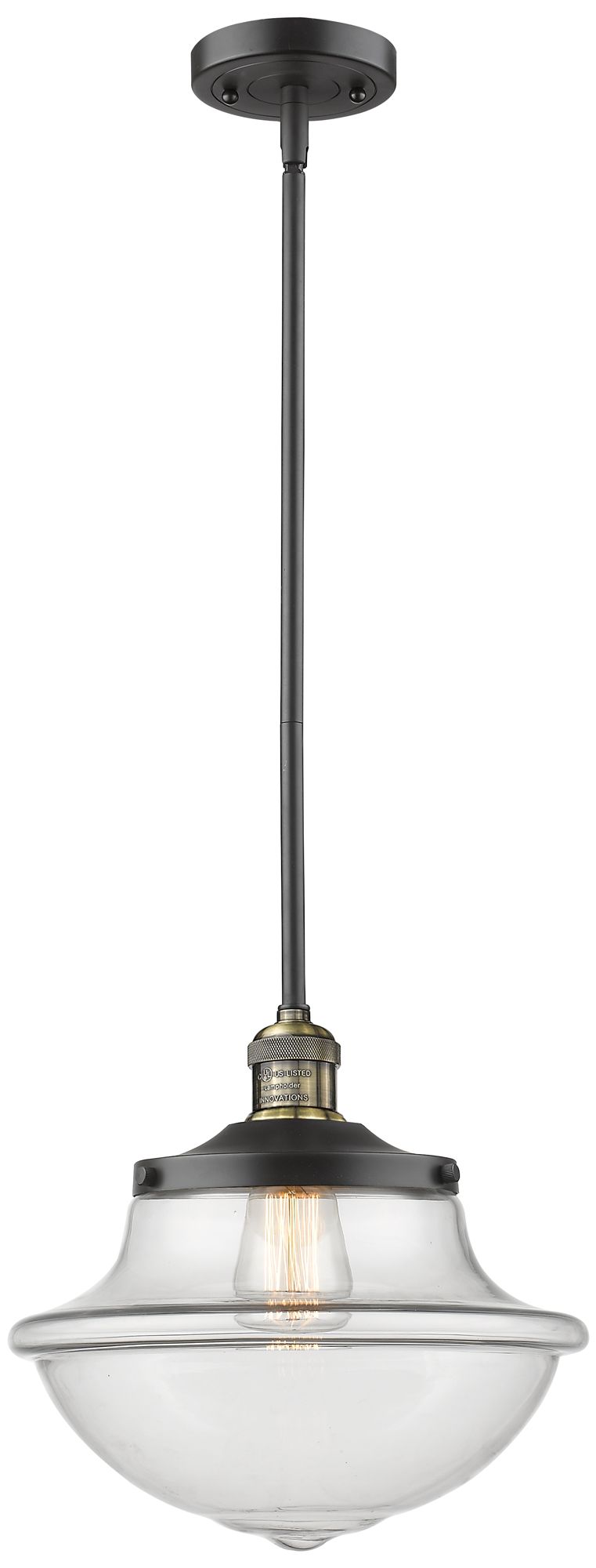 Franklin Oxford 12" Black Brass Stemmed Mini Pendant w/ Clear Shade
