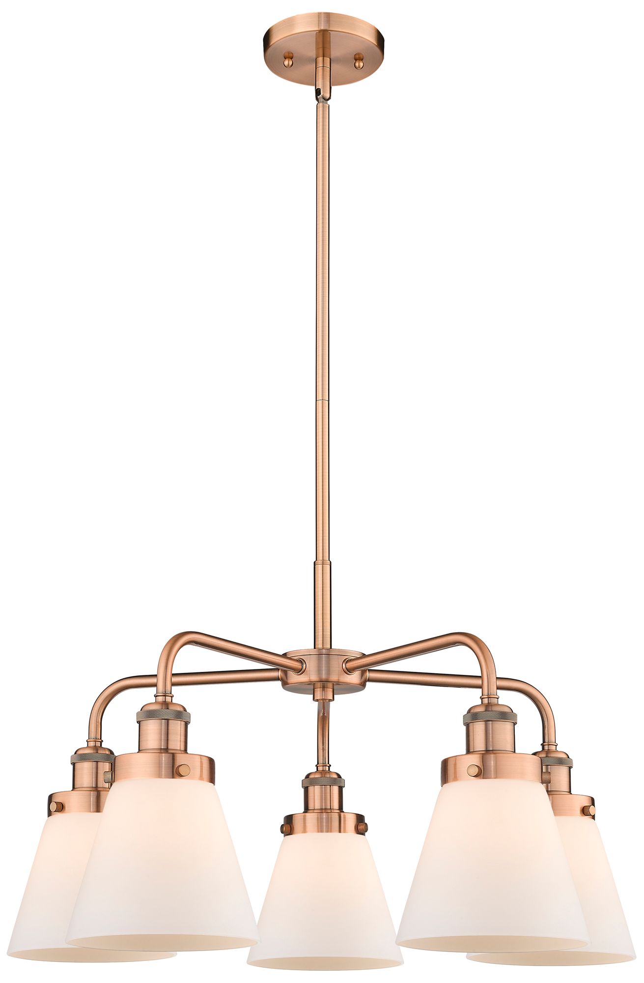 Cone 24.25"W 5 Light Antique Copper Stem Hung Chandelier w/ White Shad
