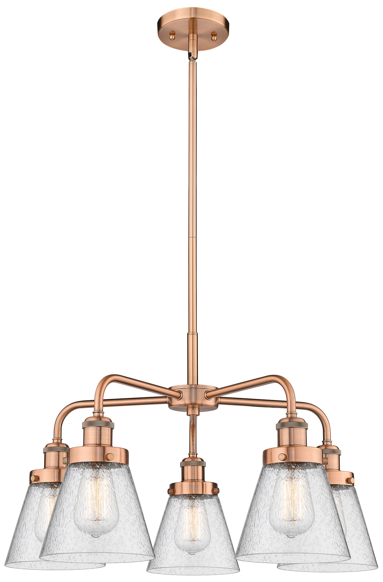 Cone 24.25"W 5 Light Antique Copper Stem Hung Chandelier w/ Seedy Shad