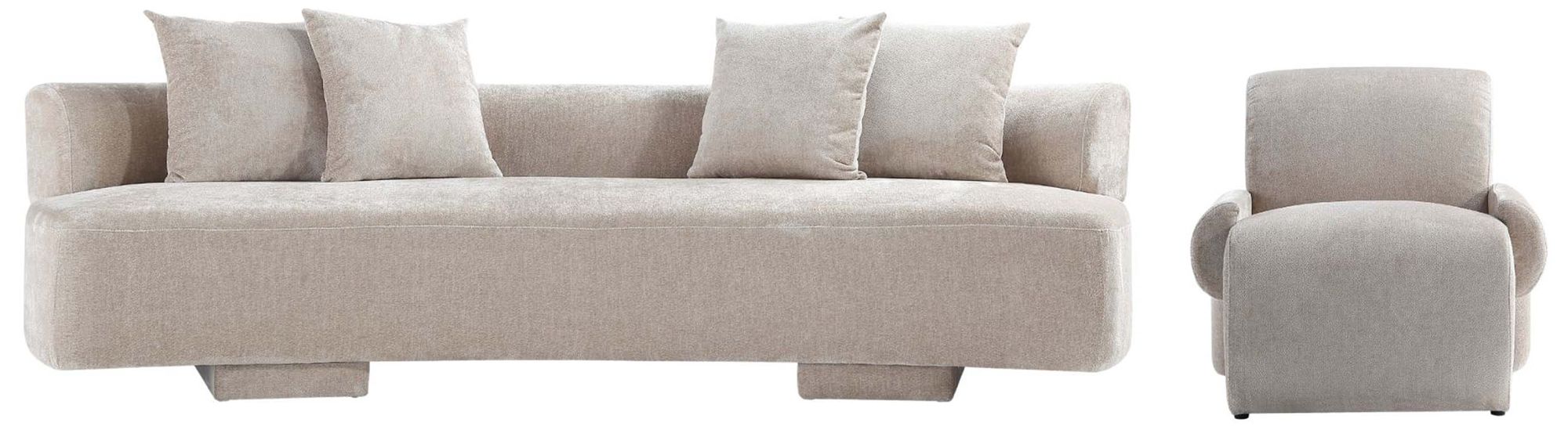 2- Piece Modern Verandah Chenille 112" Sofa and Accent Chair in Beige