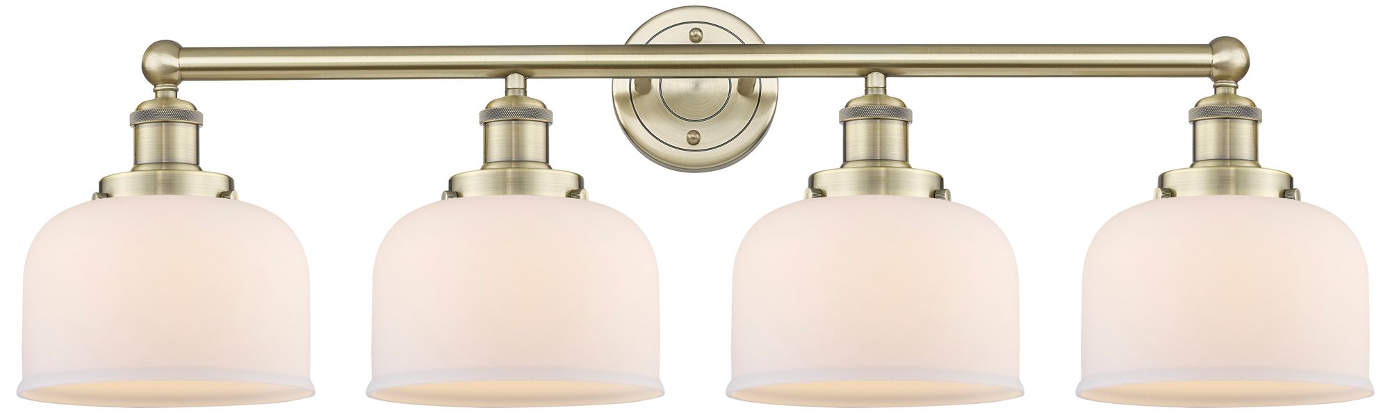Large Bell 33.5"W 4 Light Antique Brass Bath Vanity Light With White S
