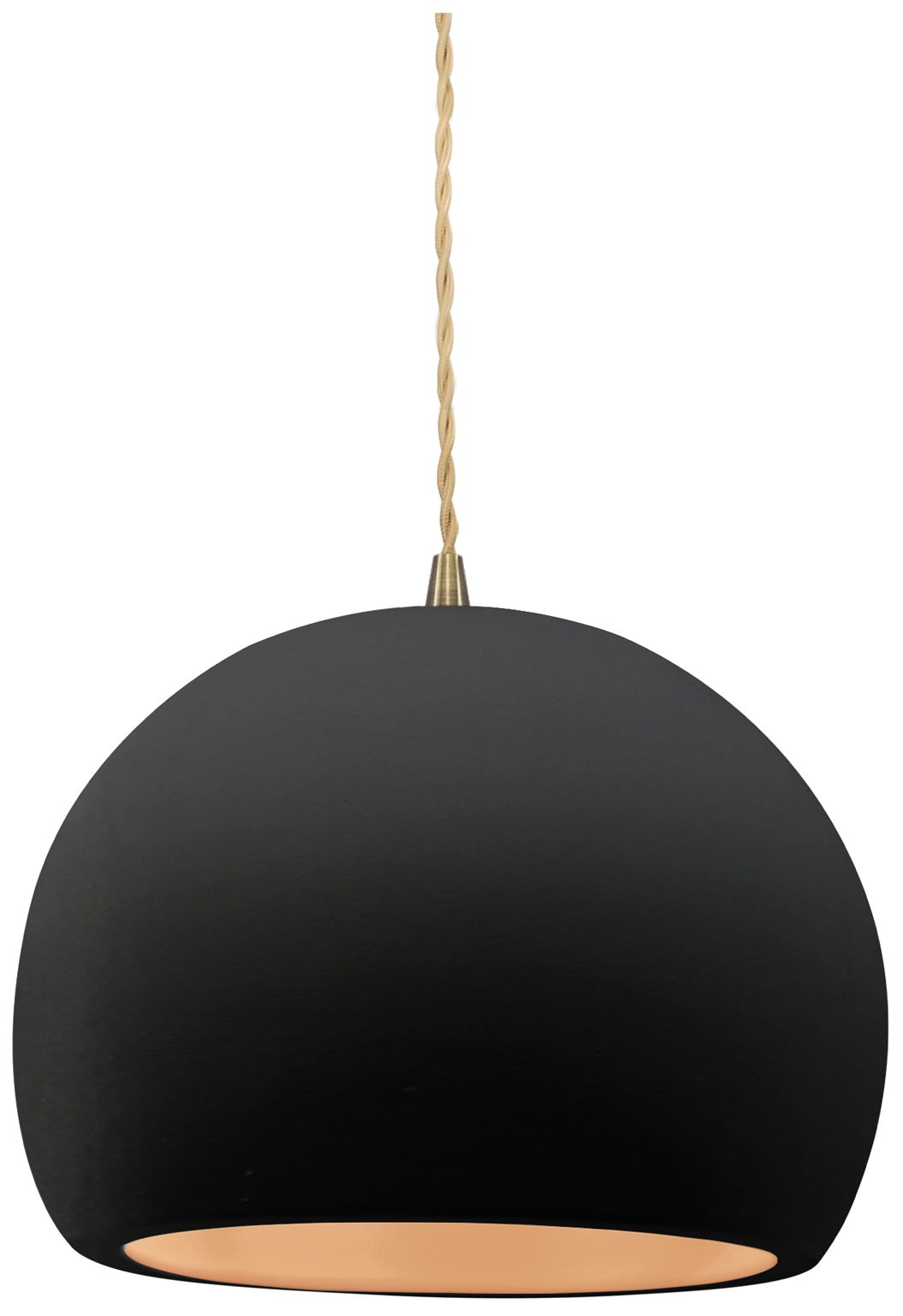 Radiance 7"W Small Globe Brass Beige Cord Pendant w/ Black And Gold Sh