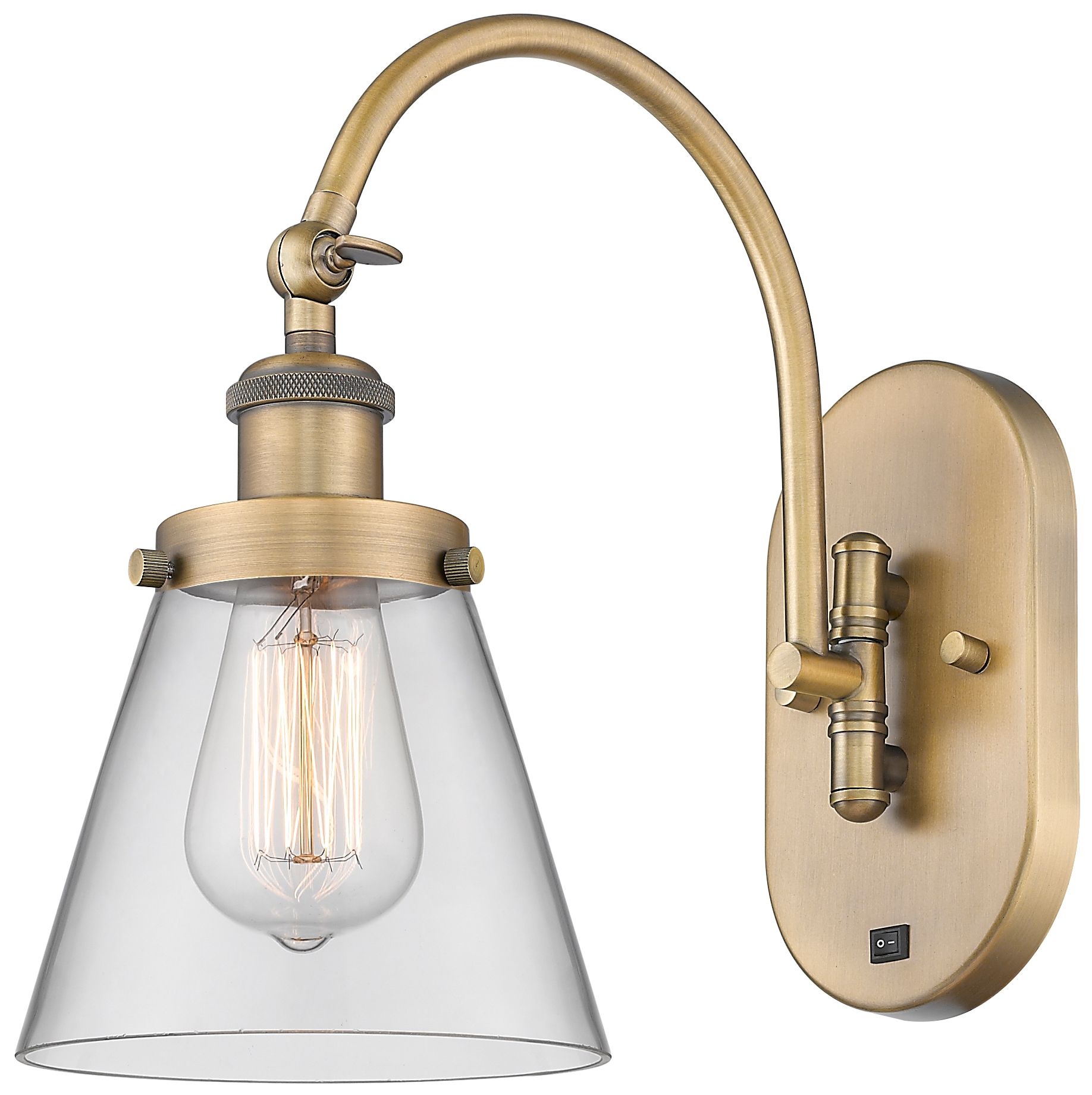 Franklin Restoration Cone 6" LED Sconce - Brass Finish - Clear Shade