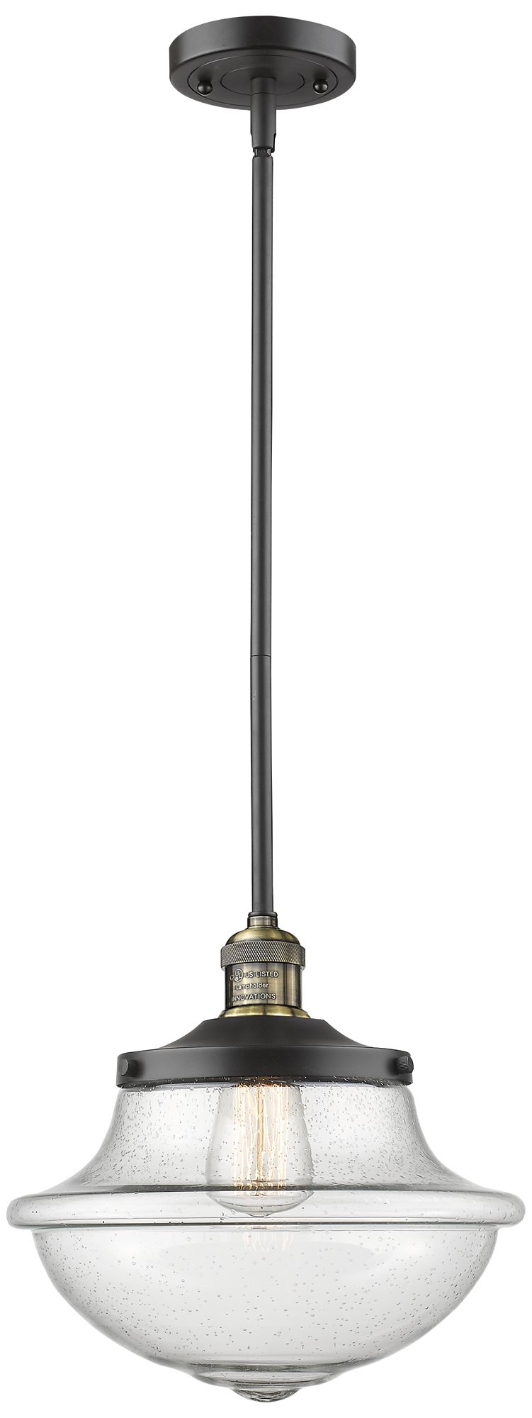 Franklin Oxford 12" Black Brass Stemmed Mini Pendant w/ Seedy Shade