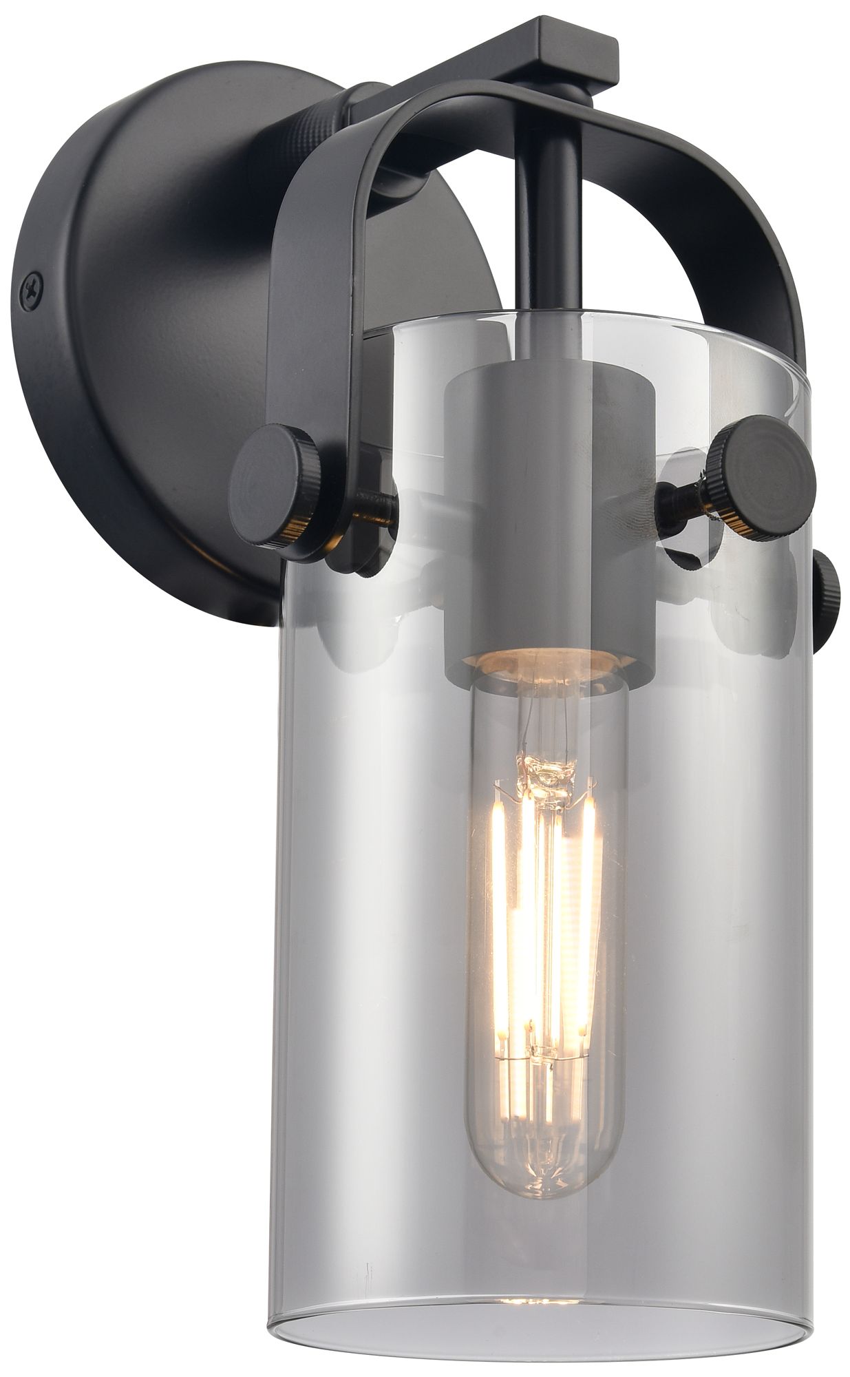 Pilaster II Cylinder 10.5" High Matte Black Sconce With Smoke Shade