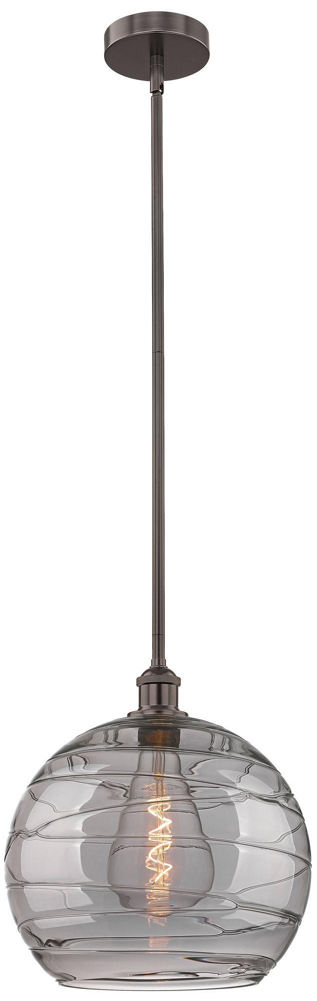 Edison Athens 13.75"W Oiled Bronze Stemmed Pendant w/ Smoke Swirl Shad