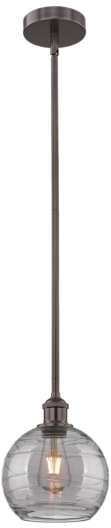 Edison Athens 8"W Oiled Bronze Stemmed Mini Pendant w/ Smoke Swirl Sha