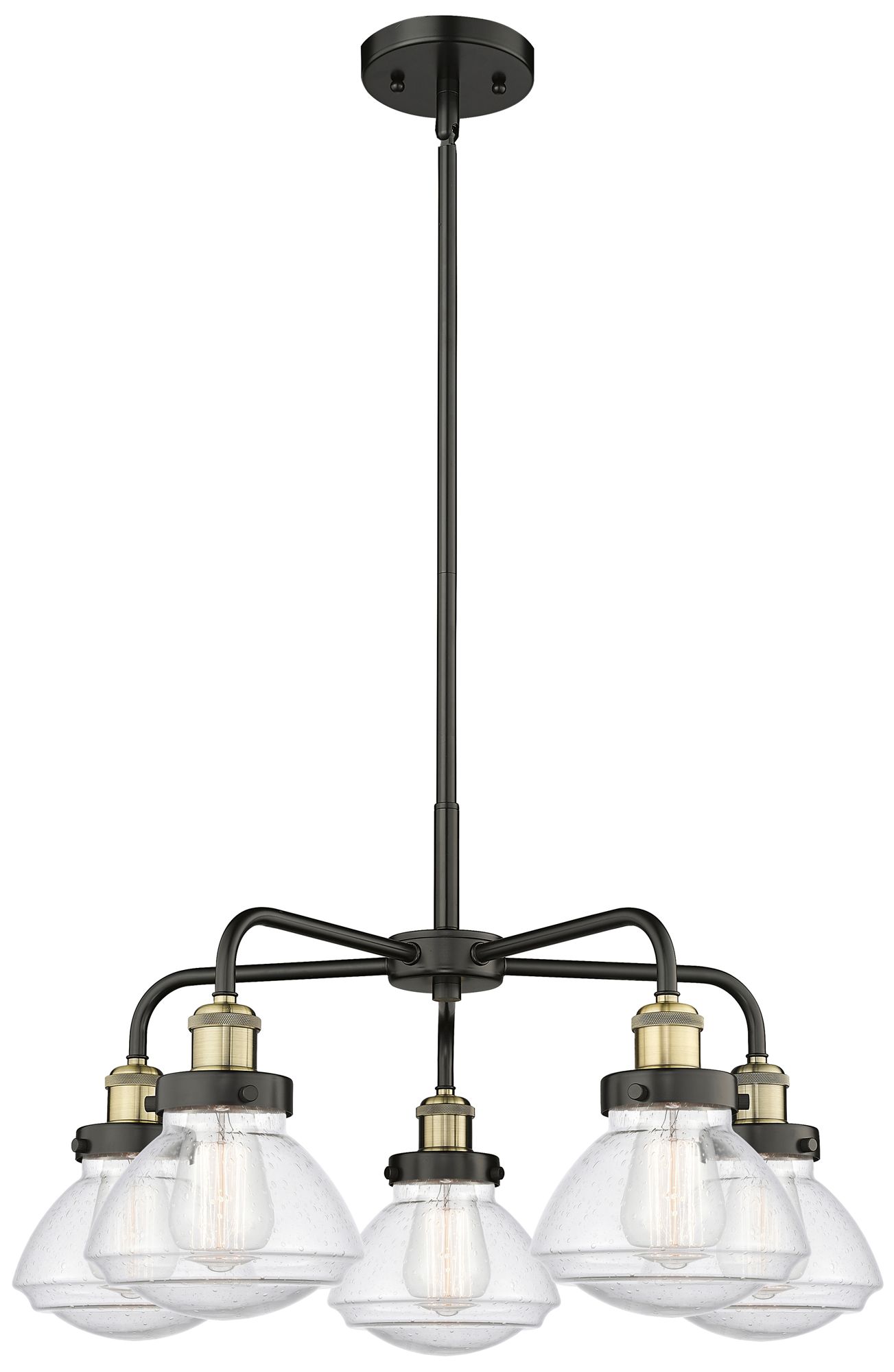 Olean 24.5"W 5 Light Black Brass Stem Hung Chandelier w/ Seedy Shade