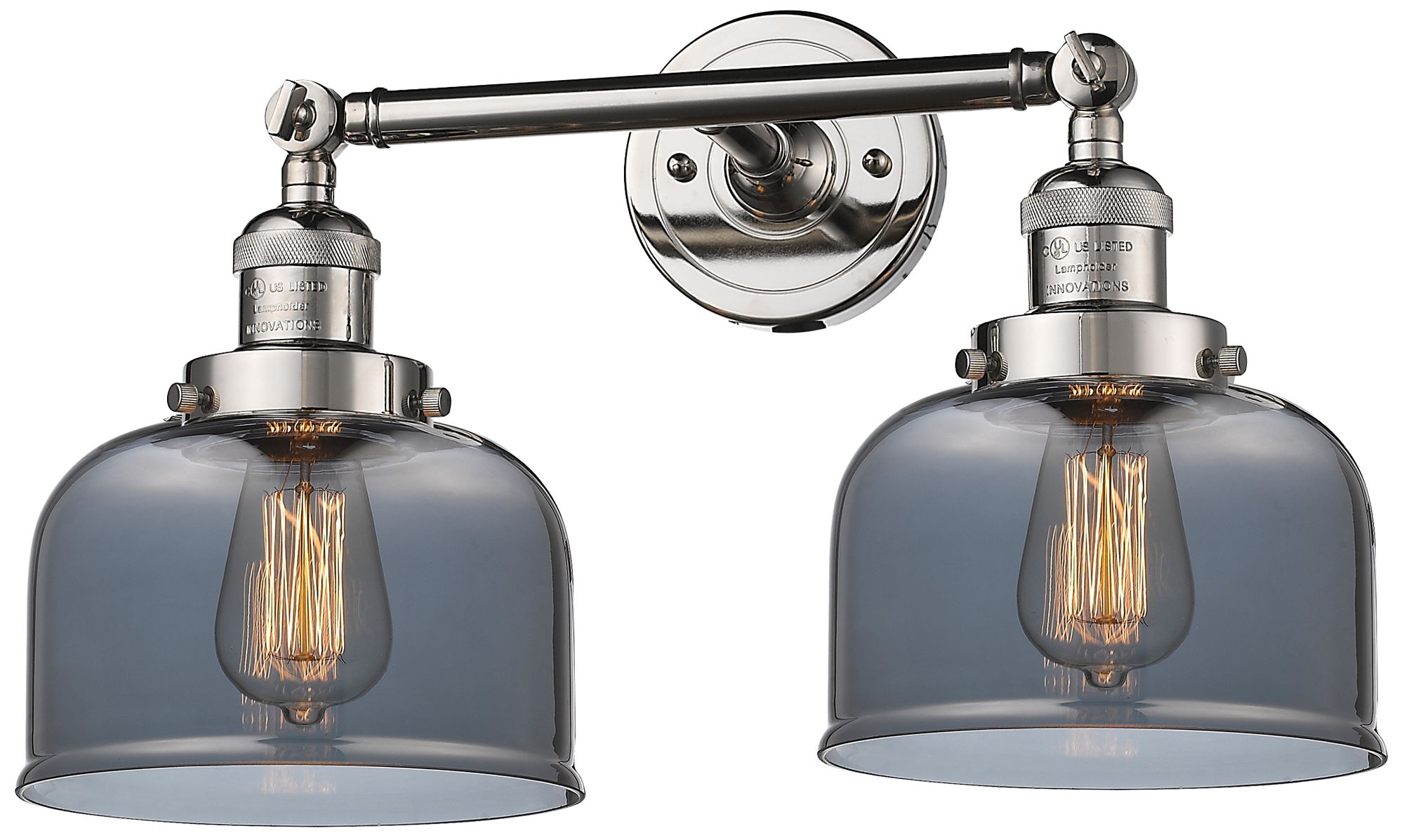 Bell 19" 2-Light Polished Nickel Bath Light w/ Plated Smoke Shade