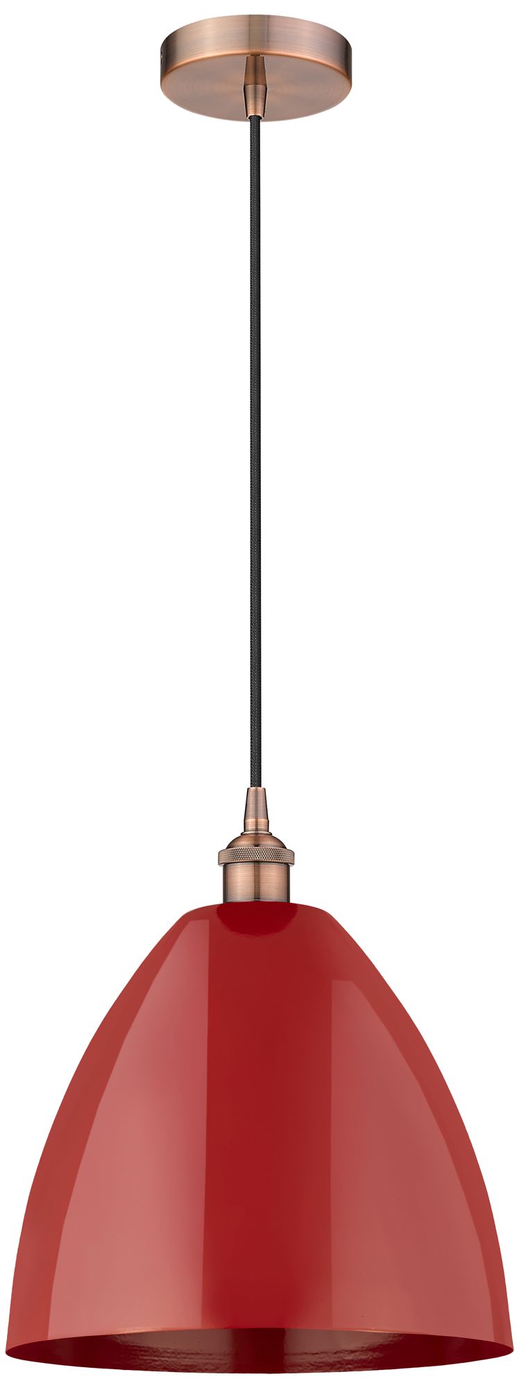 Plymouth Dome 12" Wide Copper Corded Mini Pendant w/ Red Shade