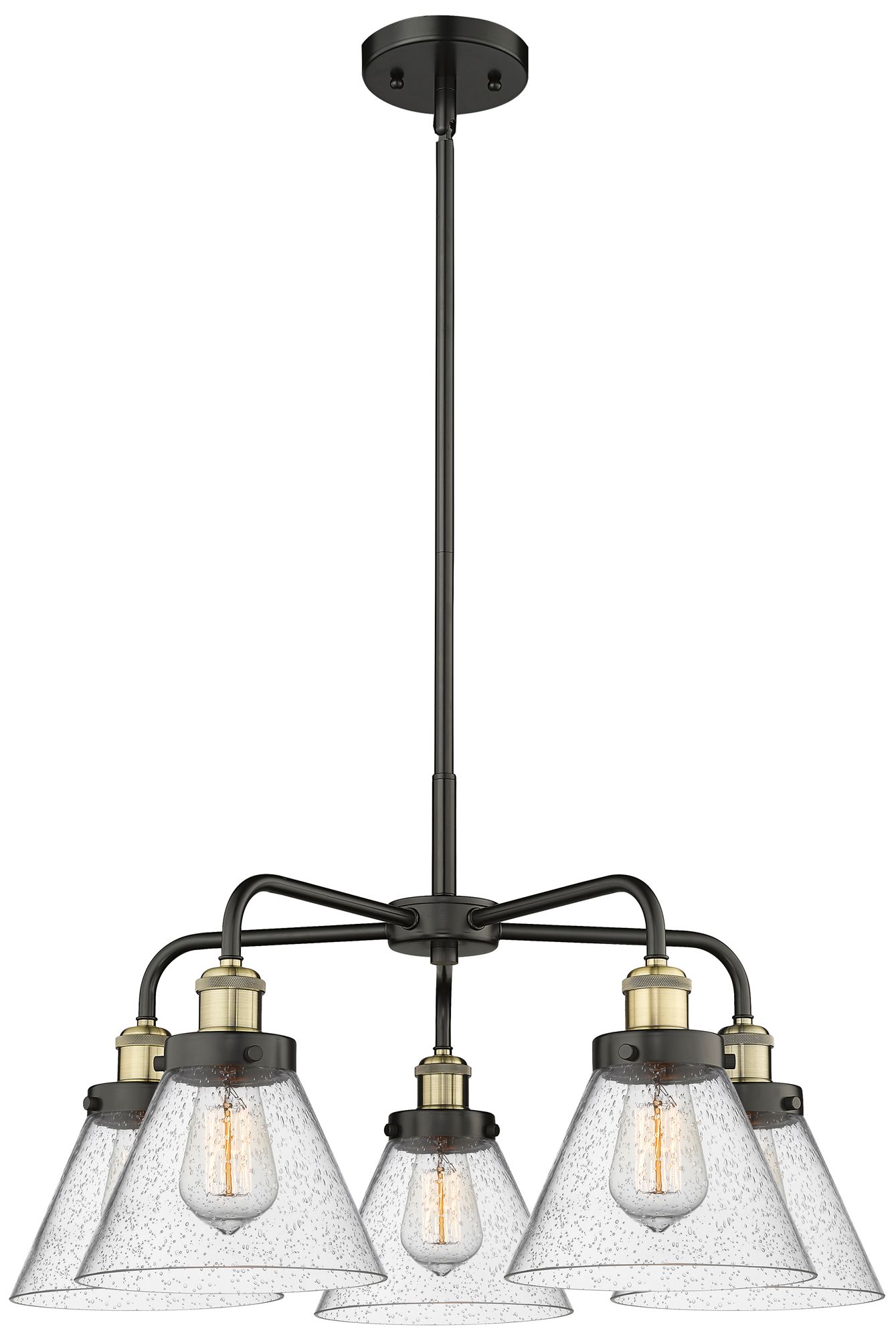 Cone 25.75"W 5 Light Black Brass Stem Hung Chandelier w/ Seedy Shade
