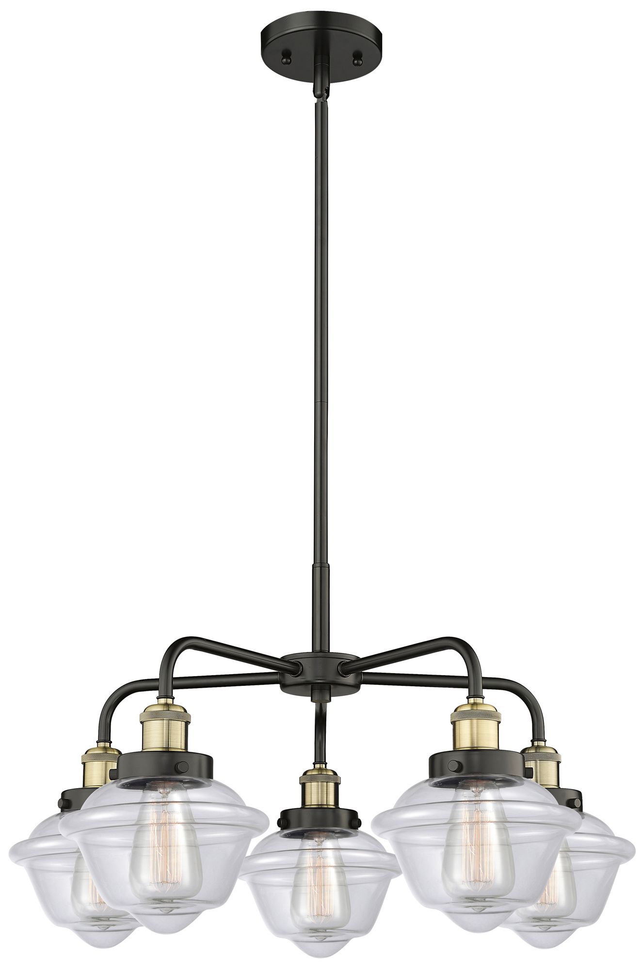 Oxford 24.5"W 5 Light Black Brass Stem Hung Chandelier w/ Clear Shade