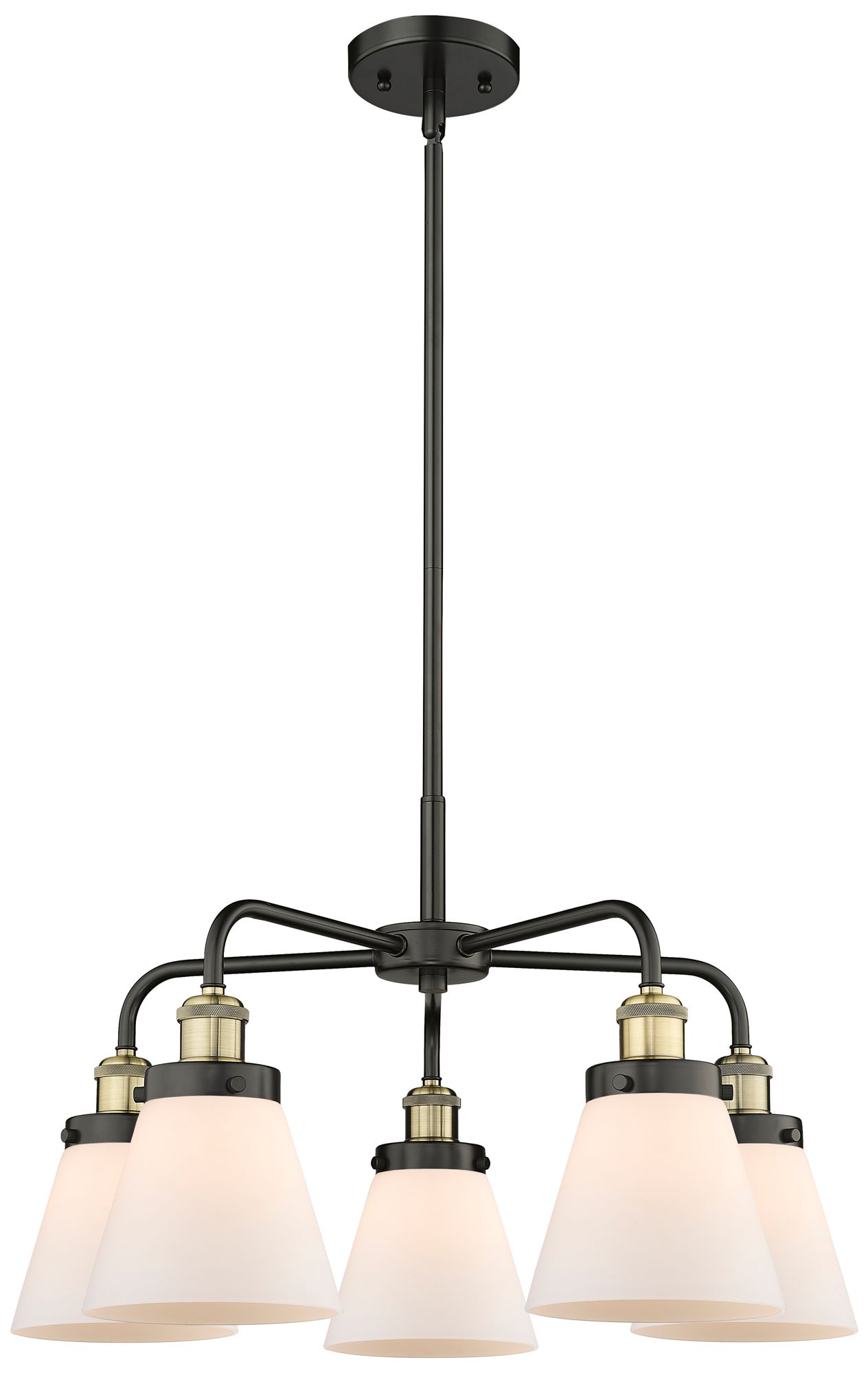 Cone 24.25"W 5 Light Black Brass Stem Hung Chandelier w/ White Shade