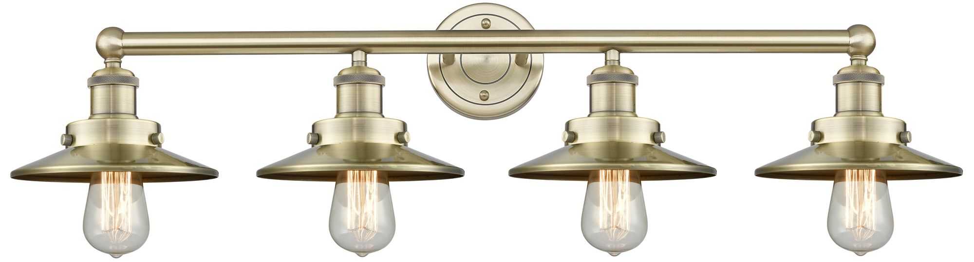Edison 35"W 4 Light Antique Brass Bath Light With Antique Brass Shade