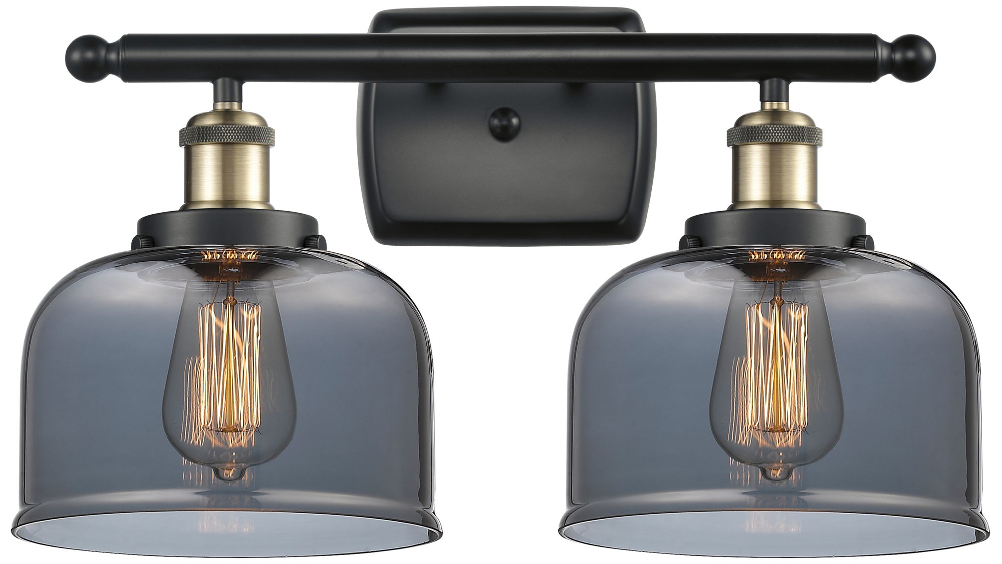 Ballston Urban Bell 18" 2 Light Black Brass LED Bath Light w/ Smoke Sh