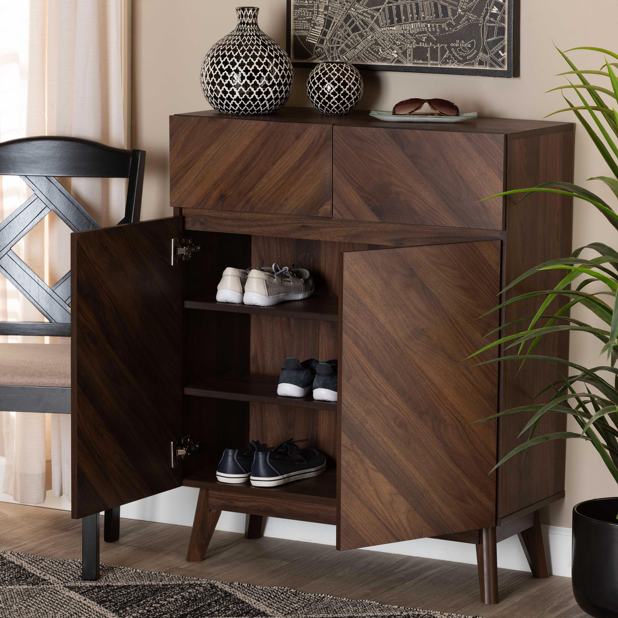 Hartman 31 1/2" Wide Walnut Brown Wood 2-Drawer Shoe Cabinet
