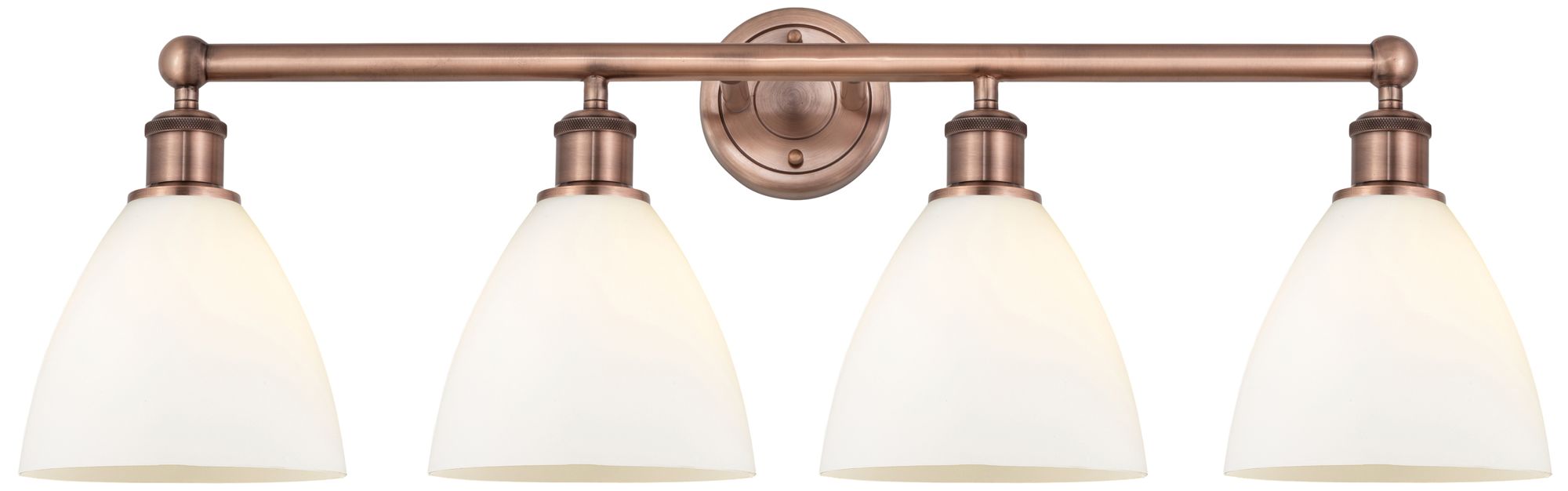 Bristol Glass 34.5"W 4 Light Antique Copper Bath Light With White Shad