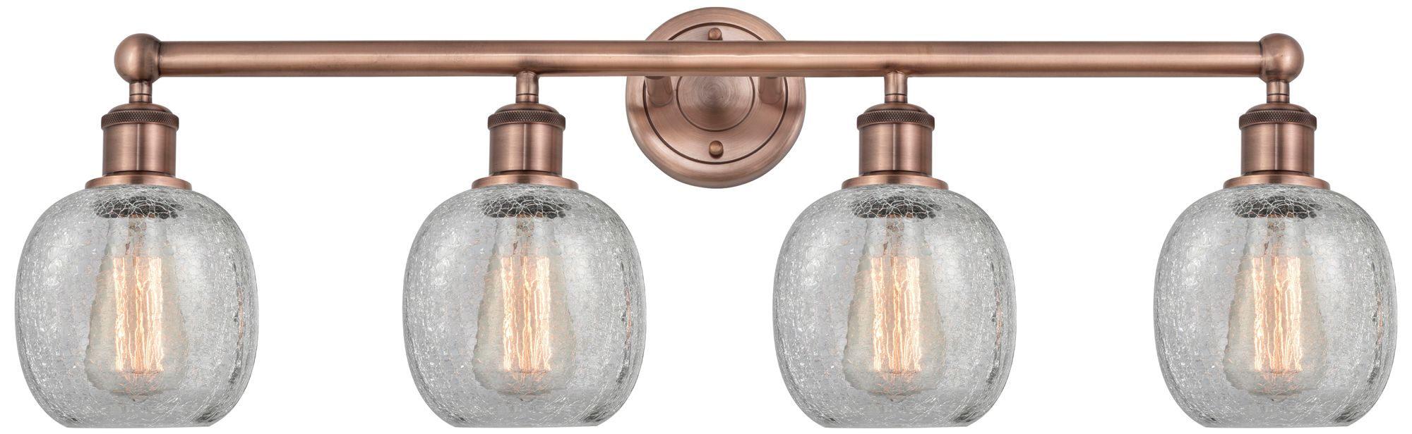 Belfast 33"W 4 Light Antique Copper Bath Light With Clear Crackle Shad