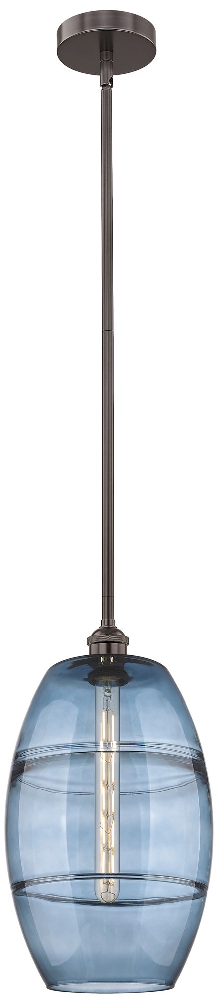 Edison Vaz 10"W Oiled Bronze Stemmed Mini Pendant w/ Princess Blue Sha