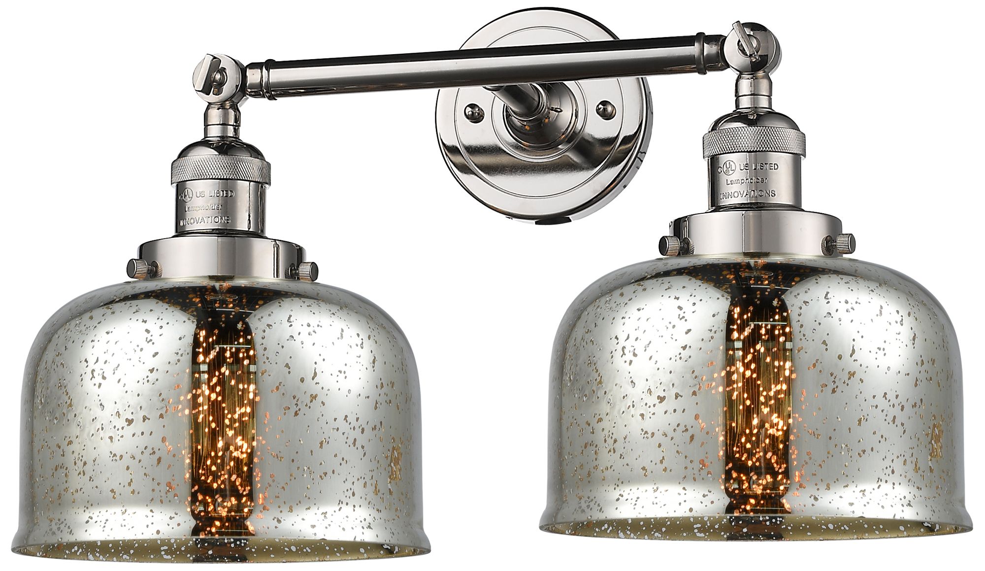 Large Bell 18" 2-Light Polished Nickel Bath Light w/ Mercury Shade