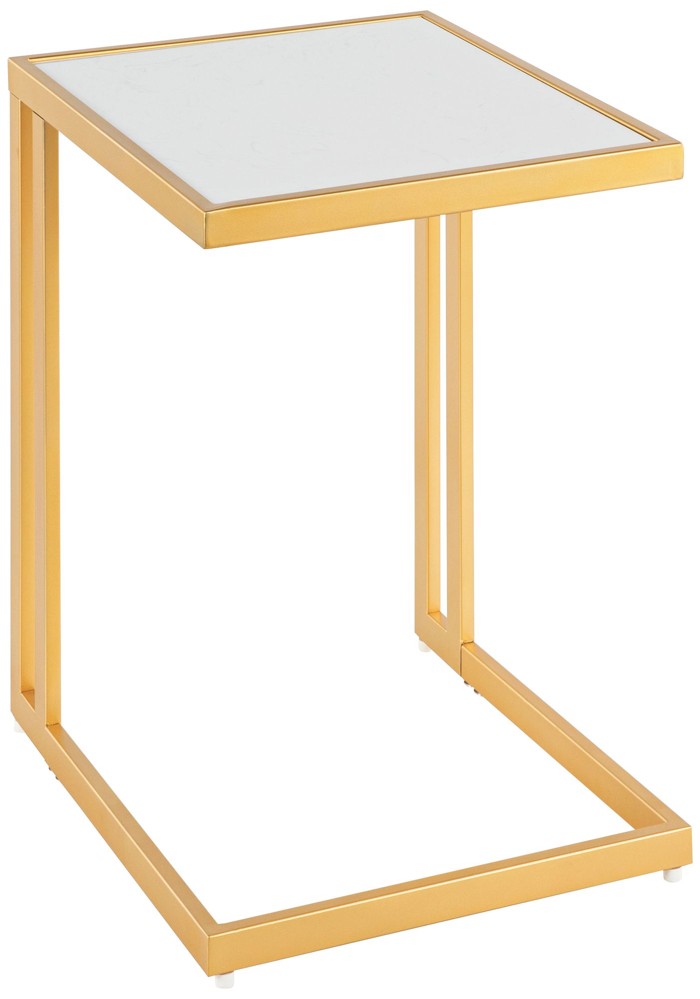 Roman 16 1/2" Wide White Marble and Gold C-Shape Side Table