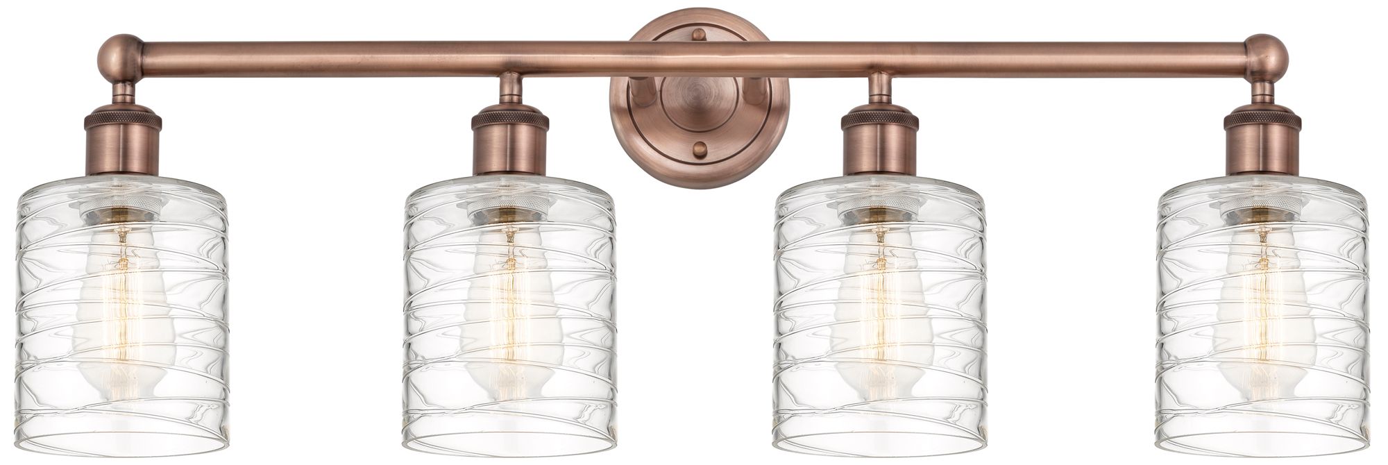 Edison Cobbleskill 32"W 4 Light Copper Bath Light With Deco Swirl Shad
