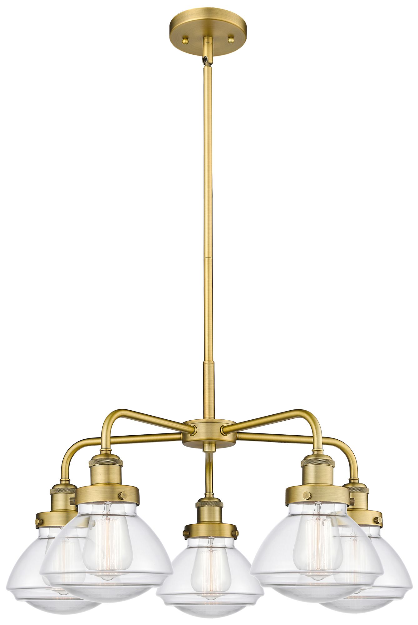 Olean 24.5"W 5 Light Brushed Brass Stem Hung Chandelier w/ Clear Shade