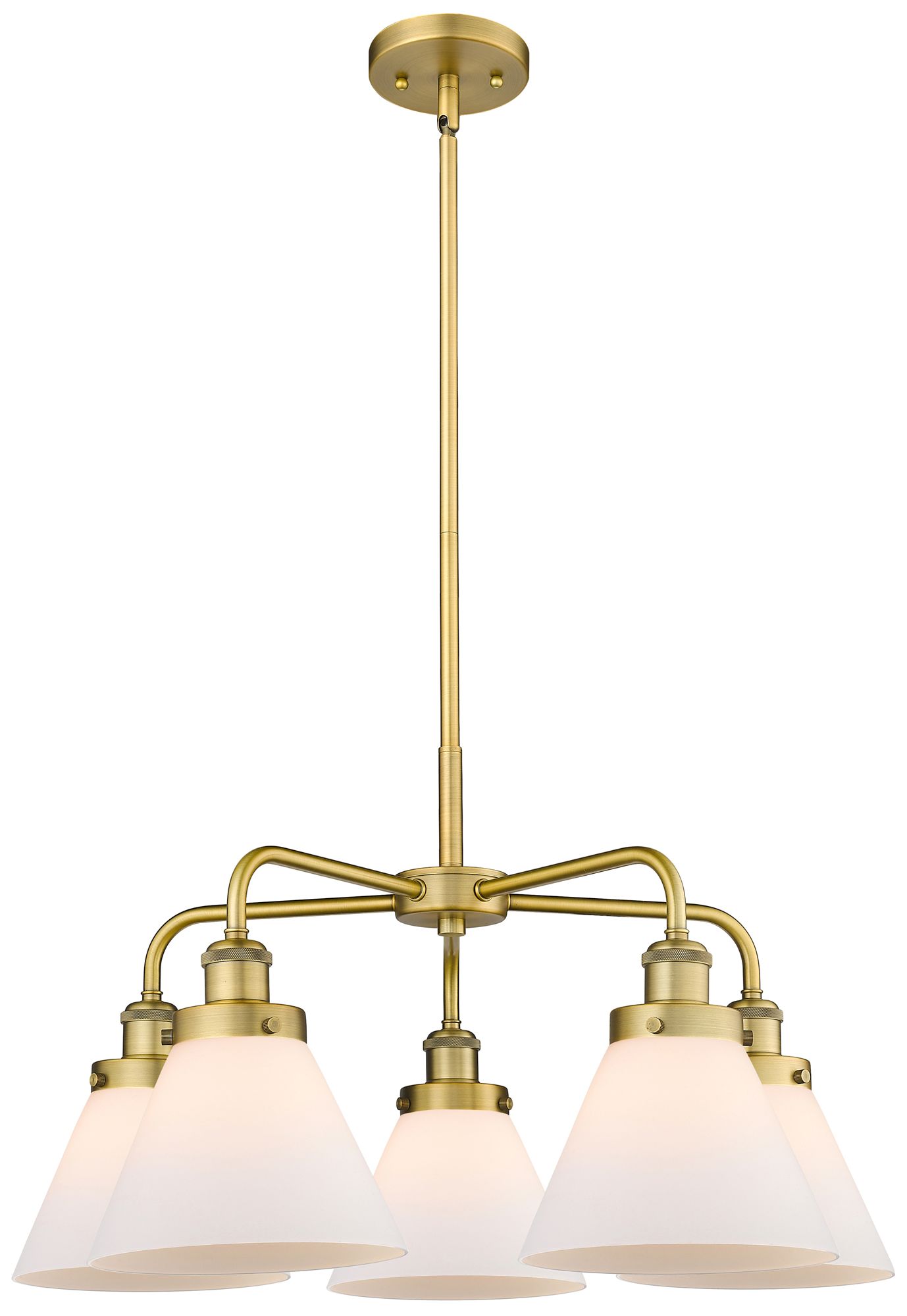 Cone 25.75"W 5 Light Brushed Brass Stem Hung Chandelier w/ White Shade
