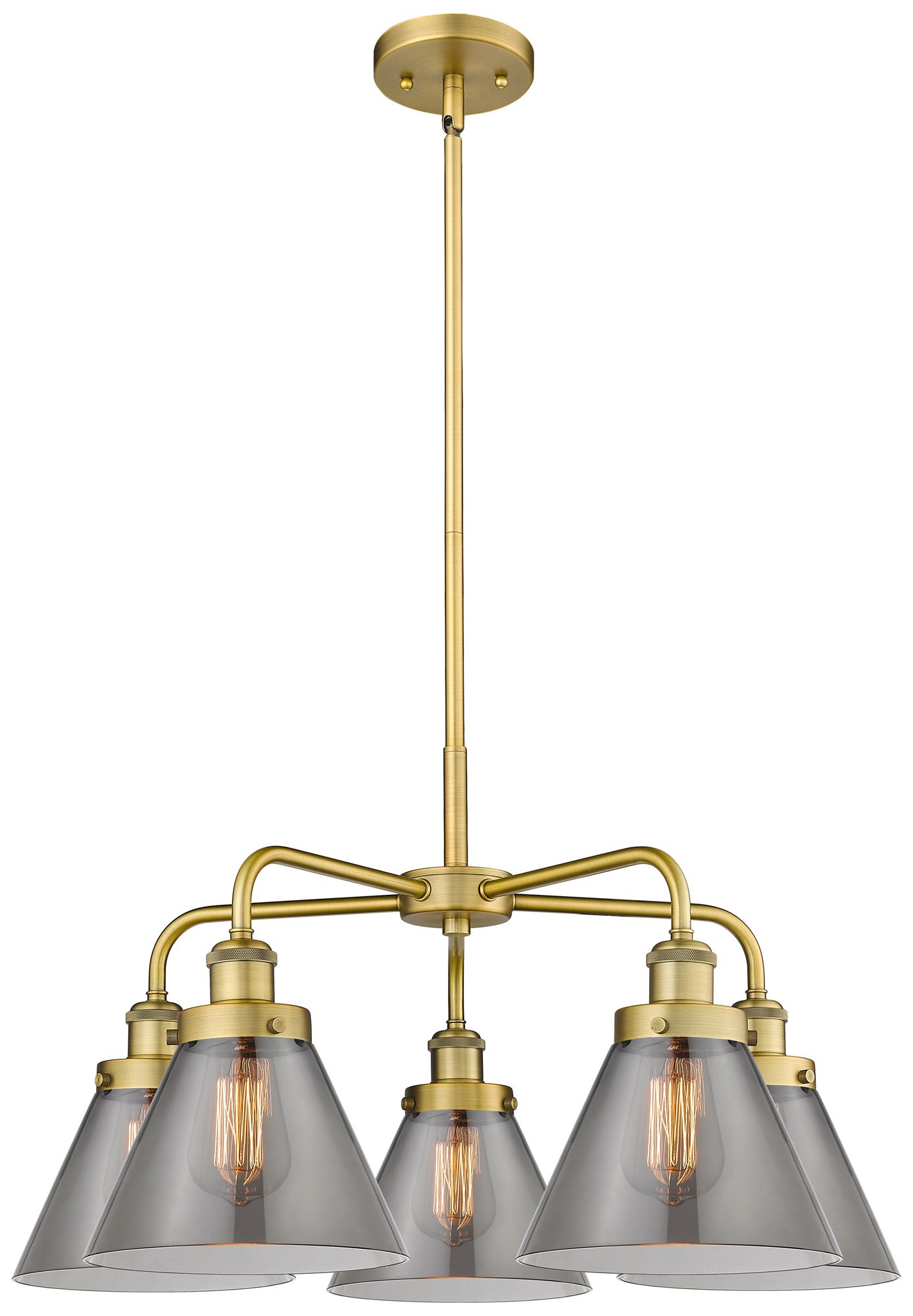 Cone 25.75"W 5 Light Brushed Brass Stem Hung Chandelier w/ Smoke Shade