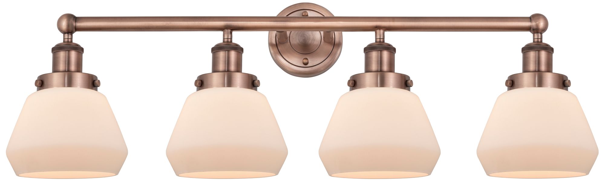 Fulton 33.5"W 4 Light Antique Copper Bath Vanity Light With White Shad