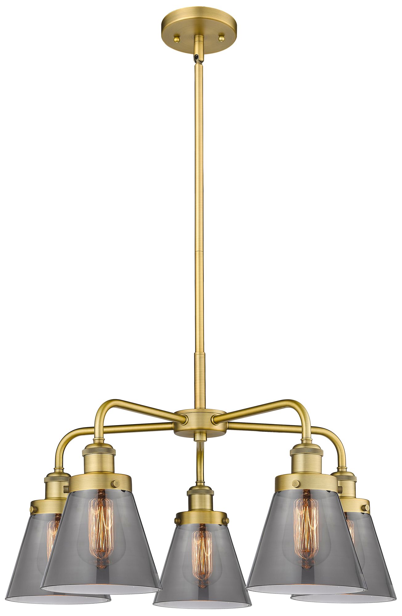 Cone 24.25"W 5 Light Brushed Brass Stem Hung Chandelier w/ Smoke Shade