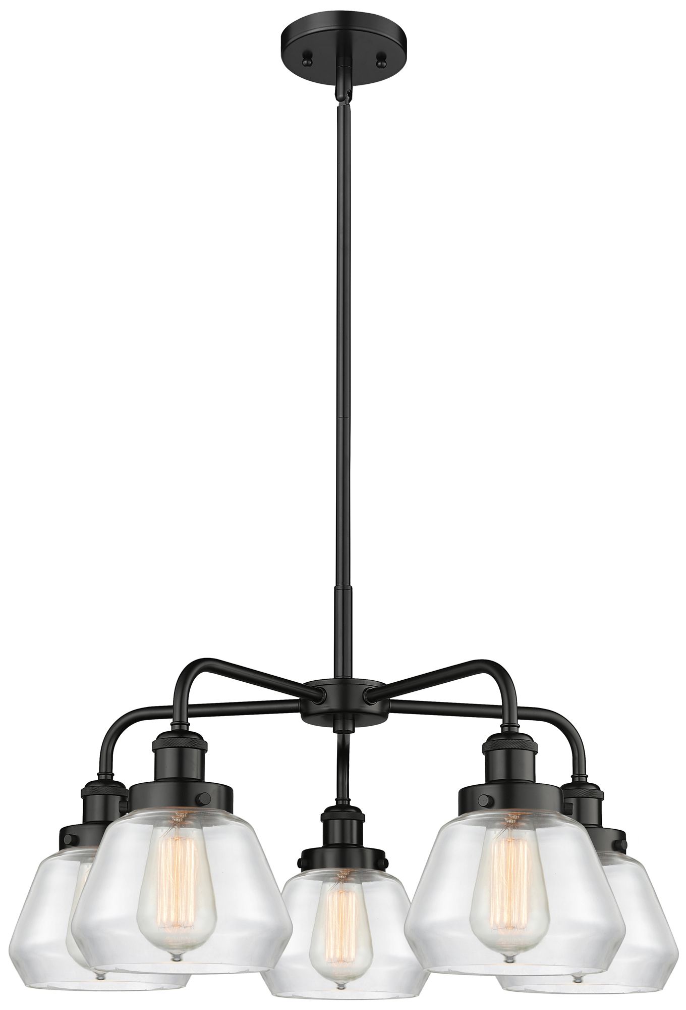 Fulton 24.5"W 5 Light Matte Black Stem Hung Chandelier w/ Clear Glass