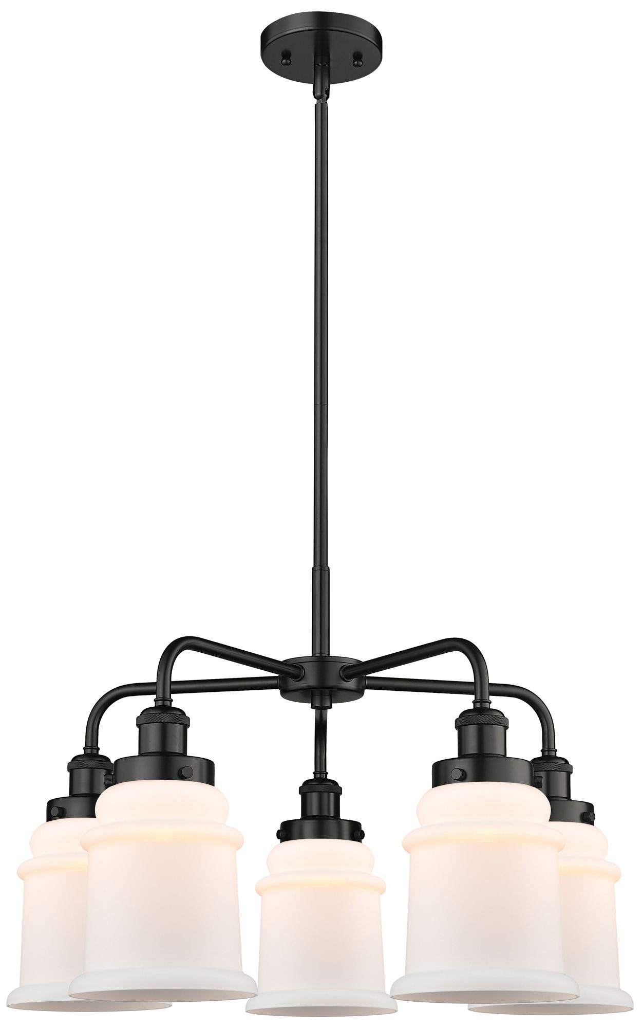 Canton 24"W 5 Light Matte Black Stem Hung Chandelier w/ White Shade