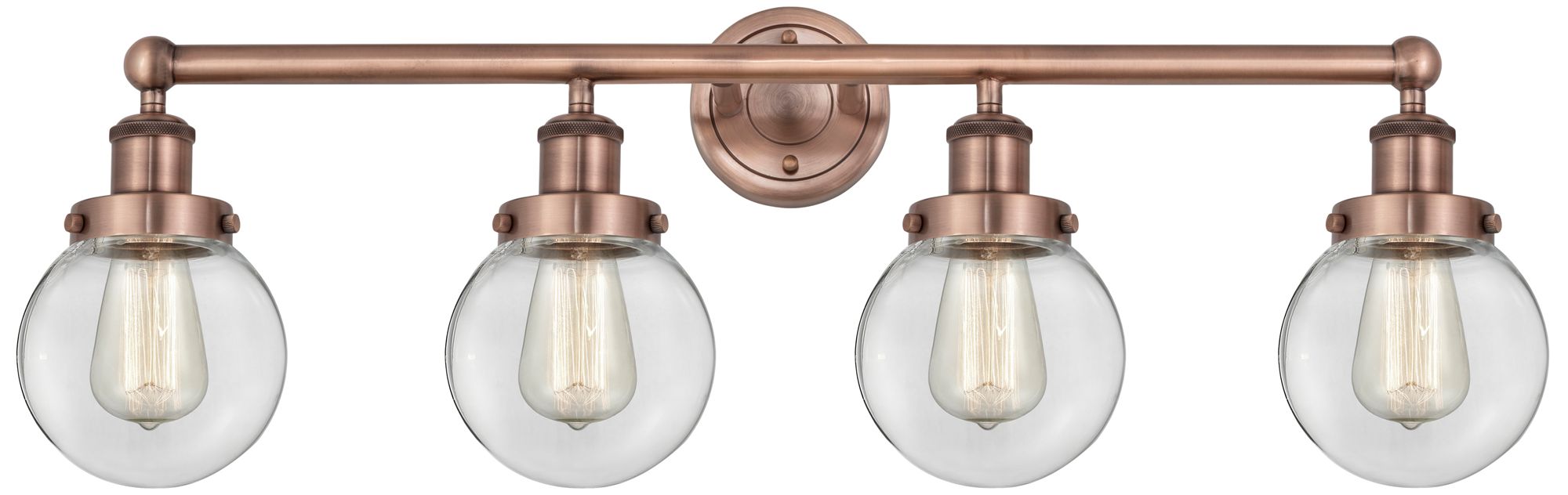 Small Beacon 33.5"W 4 Light Antique Copper Bath Light With Clear Shade