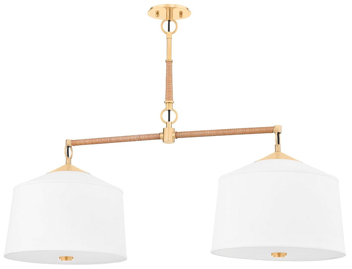 Hudson Valley White Plains 40" 2-Light Rattan Brass Island Chandelier