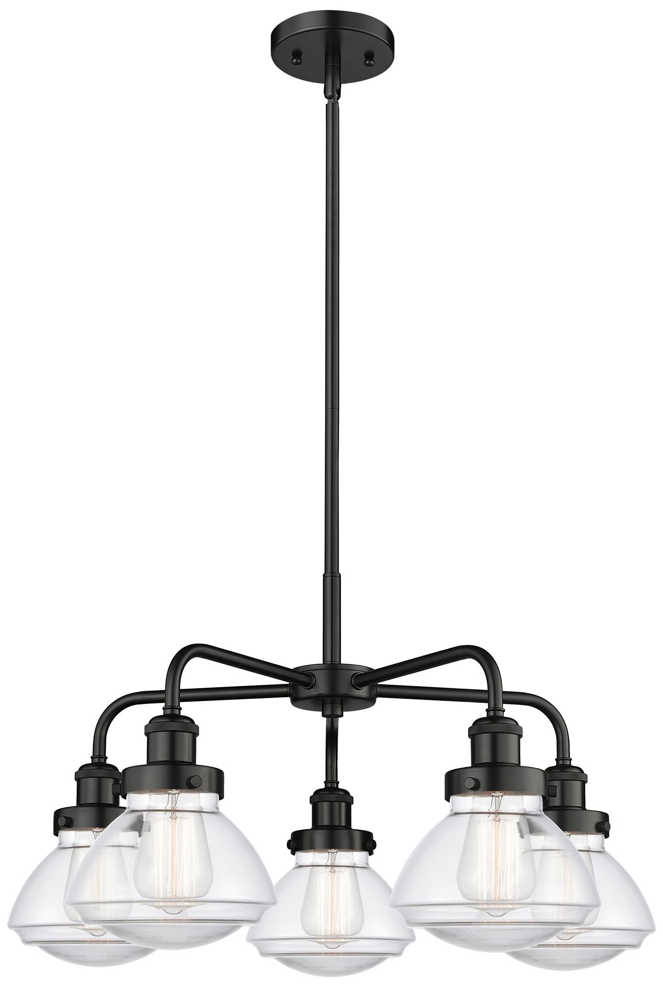 Olean 24.5"W 5 Light Matte Black Stem Hung Chandelier w/ Clear Glass S