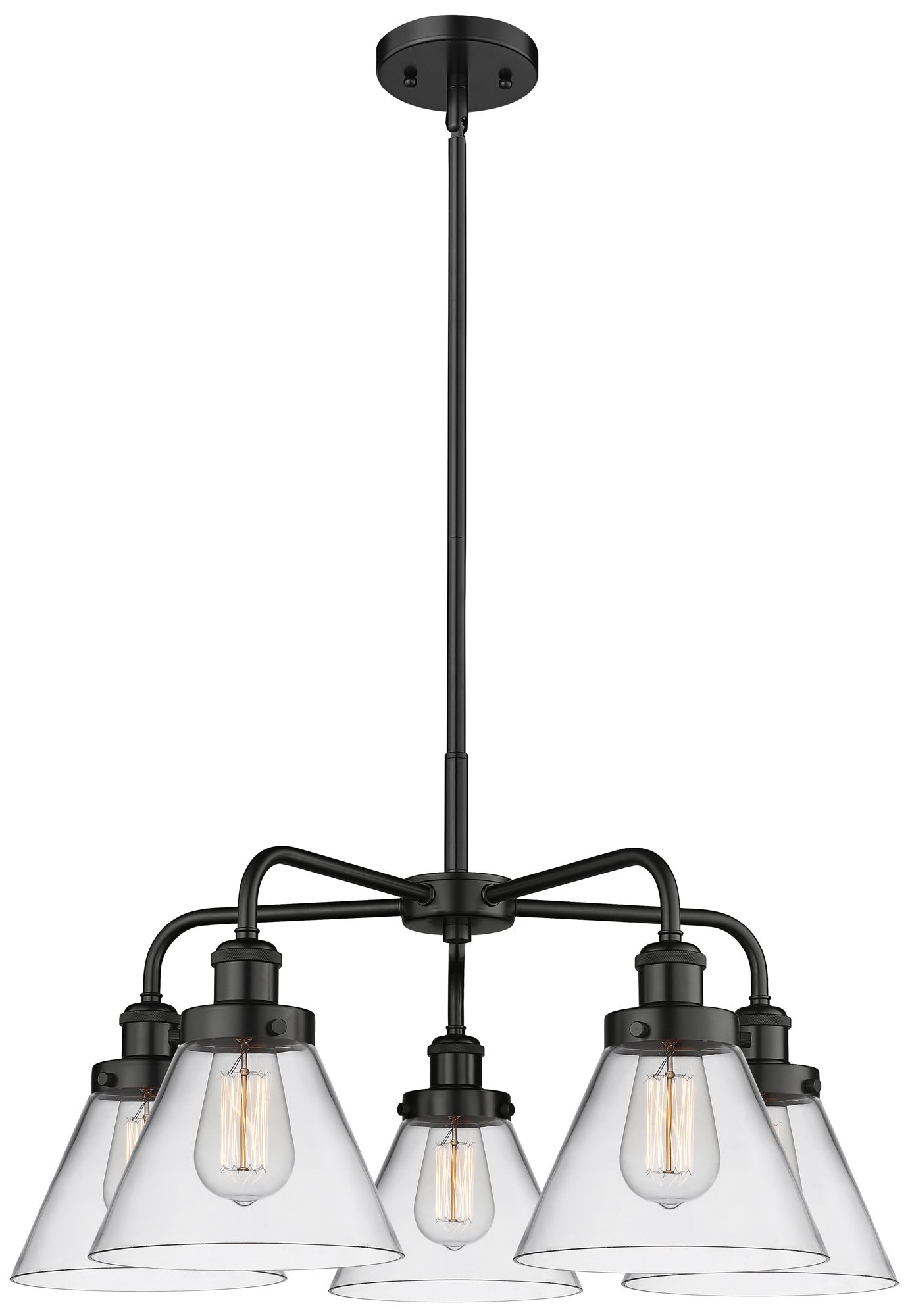 Cone 25.75"W 5 Light Matte Black Stem Hung Chandelier w/ Clear Glass S