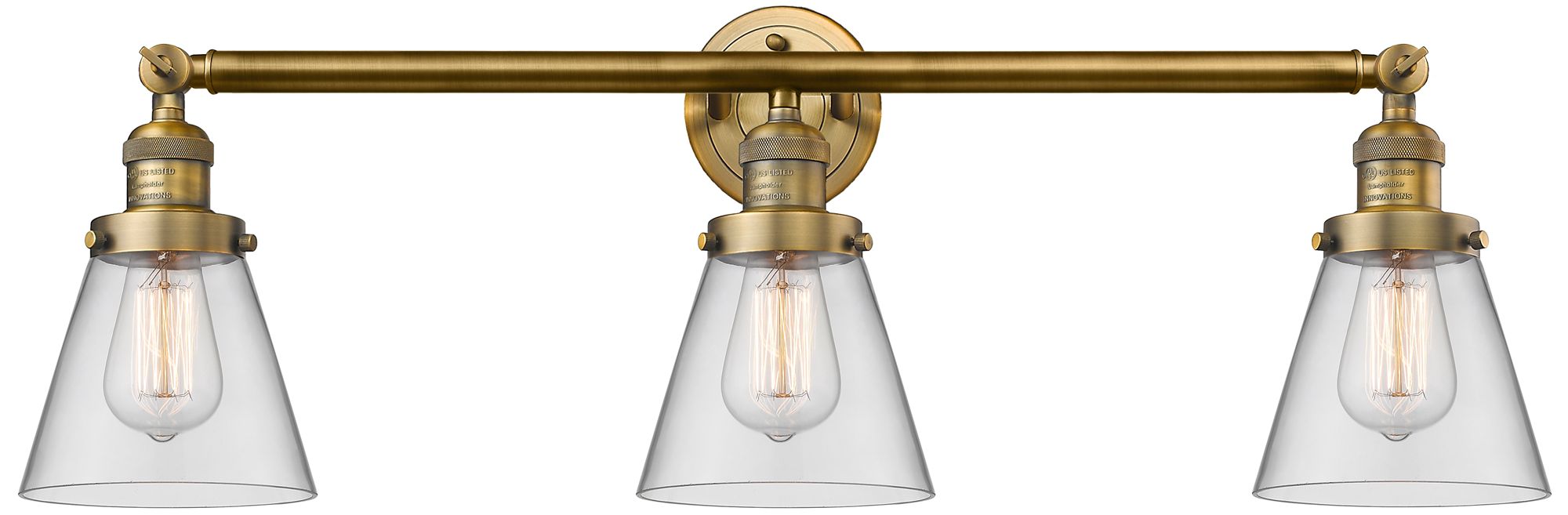 Cone 3 Light 30" LED Bath Light - Brushed Brass - Clear Shade